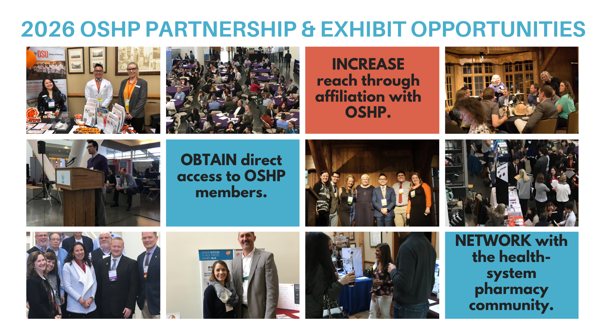 Gain visibility and show your support for the industry and OSHP by partnering and exhibiting at the Annual Seminar and Fall Seminar. If you are looking to promote your products or services to pharmaceutical professionals, this is your opportunity! We anticipate, through both events, that approximately 500 pharmaceutical professionals representing hospitals, home infusion, long term care, ambulatory care clinics, and retail pharmacies are expected to attend.